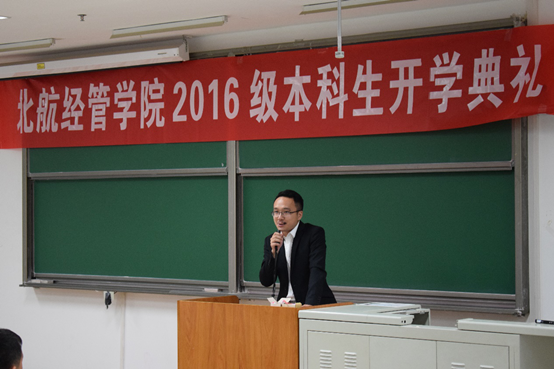 2016年9月12日晚6点半,经管学院2016级本科生新生开学典礼在沙河校区教3-210召开。beat365亚洲版官网院长范英教授、副院长秦中峰教授、党委副书记王喜忠老师、分团委书记张驰老师、16级本科生行政班班主任吴春林、刘冠男、周荣刚、刘莹、张军欢老师、1608大班辅导员余阳杰、张羽驰出席开学典礼,开学典礼由王喜忠书记主持。