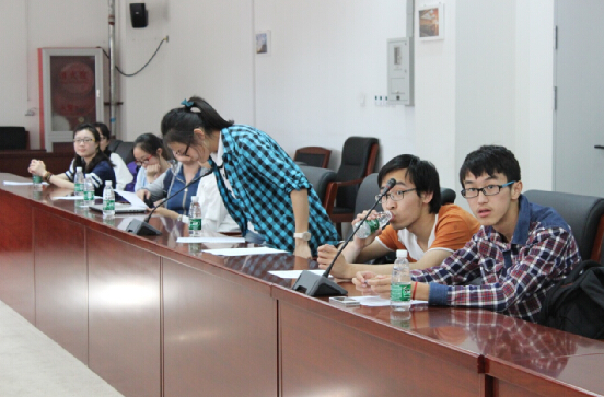 2015年5月19日星期二下午四点半,经管学院党委副书记王喜忠老师与1408部分同学在沙河校区实四106会议室开展交流会,闫琦与胡杰辅导员出席交流会。