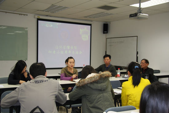 2013年12月26日下午3点,beat365亚洲版官网经管学院助老小组周年总结会在新主楼A1148召开。经管学院学生工作办公室主任衣萌老师,研究生工作办公室欧阳丽莎老师、退休职工党支部书记李清老师,退休教职工代表徐老师、王老师、郝老师,以及经管学院志愿者协会干部和12级、13级助老小组成员出席了会议。会议由经管学院助老小组和北航经管分研会主办,经管学院研究生指导办公室欧阳丽莎老师主持。