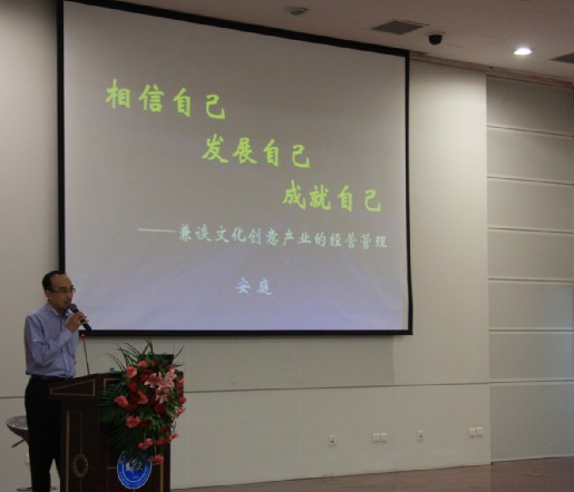 论坛伊始,安董首先和大家分享了他的创业经历和如何获取创业中第一桶金的经历。为同学们总结了果断优于犹豫,创新重于守旧的理念。同时,也提醒同学在创业过程中要利用一切可以利用的资源,去拓展自己的人脉,积累自身的人脉资源,在未来这将是非常重要的生产力。在随后的发展中通过成功运作杨丽萍的《云南映象》大型原生态歌舞剧,公司在演出市场也取得了巨大成功。安董通过这样的事例告诫同学,行动远远要比言语重要。只有行动了,才有可能把握住转瞬即逝的机会。在谈到如何将中国的文化产品打入国际市场的问题时,安董提出要用“引进来”武装自己,充分学习国外的经营管理经验,科技创新能力和理解市场的游戏规则。