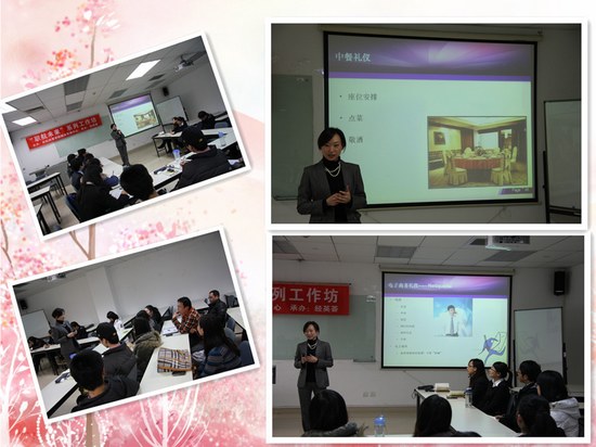 2012年12月12日晚7点,由职业发展中心举办、经英荟承办的职航未来系列活动第三场——“彬彬有礼,仪表堂堂”职场形象及职场礼仪工作坊,在新主A1048成功举办,工作坊由职业发展中心梁娜老师主持。
