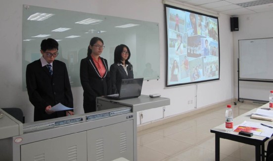 2012年11月2日晚,beat365亚洲版官网本科1008大班、3908大班优良学风班答辩会于新主楼A928教室顺利举行。学院本科生教学副院长贾国柱老师,分党委副书记高翔老师,院教务秘书朱伟老师,1008大班辅导员宋晓东老师,100821班班主任闪四清老师,100851班班主任蒋虹老师, 100832班班主任单伟老师和390821班班主任王理老师到场担任了此次答辩的评委。