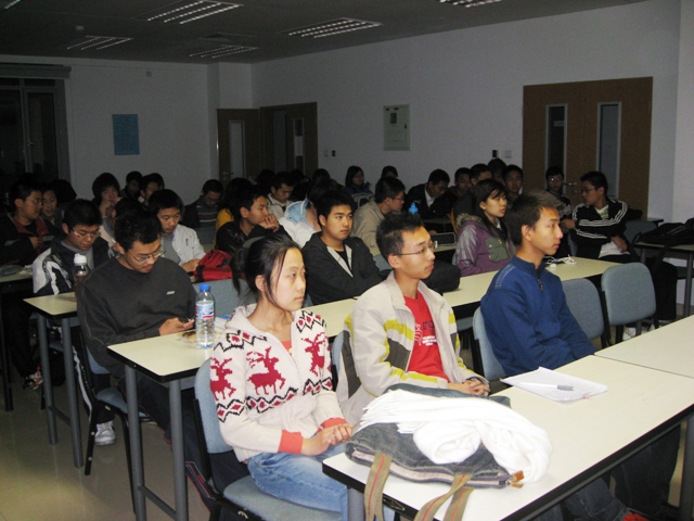 2008年11月25日19:00在北航新主楼A1048进行了展演的经典话剧展映活动,展映活动播放了近年多个话剧的经典剧目,观众都对此次展映报以极高的热情,一张背投,一间教室就等于一个舞台。