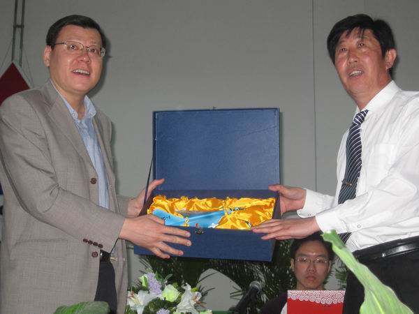 北航经管学院党委书记刘志新教授与巨各庄中学校长、党支部书记张文明老师的礼品互赠仪式将本次活动推向了高潮。随后,刘书记为本次活动致辞。刘书记在讲话中表达自己的殷切希望,希望巨各庄中学能够越办越好,也希望巨各庄中学的同学们能够努力学习,将来成为国之栋梁。“知识造就人才主题教育活动”将有其深远的意义,刘书记还表示如果有可能的话这样的活动将要继续下去。