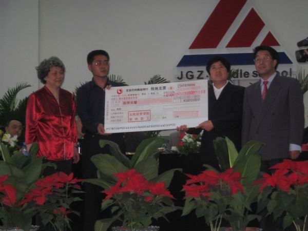 当天,在“知识造就人才”主题教育活动中的另一亮点就是捐赠仪式。北航经管学院的各党支部代表们向巨各庄中学赠送了图书以及赠言。经管学院的老师们还自己出资为巨各庄中学捐赠了5000元钱。与此同时,巨各庄中学也向有50多年党龄的老师们赠送了他们的特色工艺品——剪纸。