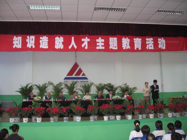 经过了一个半小时的车程,我们抵达了北京市密云县巨各庄中学。一下车就受到了巨各庄中学校领导及学生的热烈欢迎。随后,正式进入本次活动的主要项目——“知识造就人才”主题教育活动交流大会。