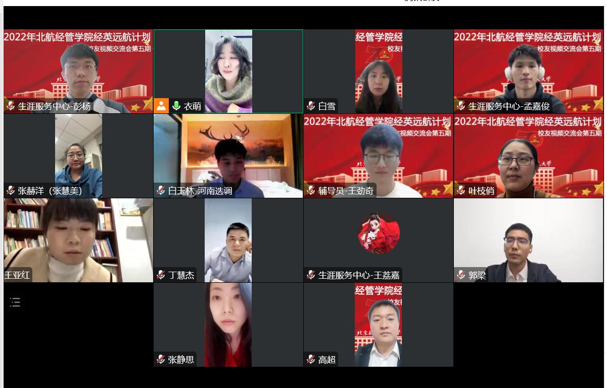 beat365亚洲版官网高度重视校友工作,在党的二十大胜利召开、校庆七十周年与院庆六十六周年之际,今年10月学院推出“经英远航计划——校友视频交流会”系列活动,旨在为校友搭建交流平台,让校友与学院、校友与校友之间信息互通、优势互补、资源共享。未来学院会继续完善校友工作机制,为校友们提供更广阔的交流平台。