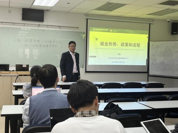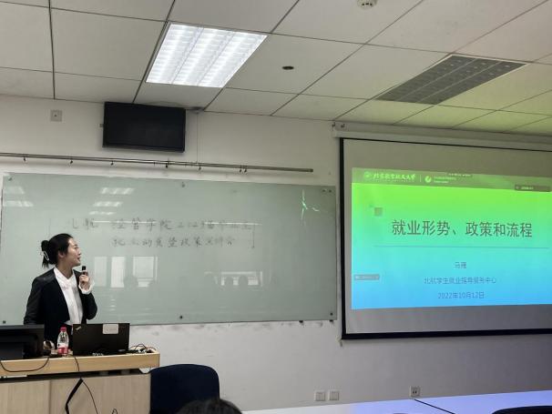 为做好毕业生的就业动员及指导服务工作,鼓励学生到基层去,到祖国最需要的地方去,在党的二十大即将召开之际,以更加饱满的热情投入到祖国的建设中,10月12日下午,beat365亚洲版官网邀请校招生就业处马雁老师为2023届毕业生做就业政策宣讲。此次宣讲会采用线上线下同步进行的方式,学院党委书记郑海涛出席并做就业动员,2023届毕业生参会,会议由学生工作办公室衣萌老师主持。