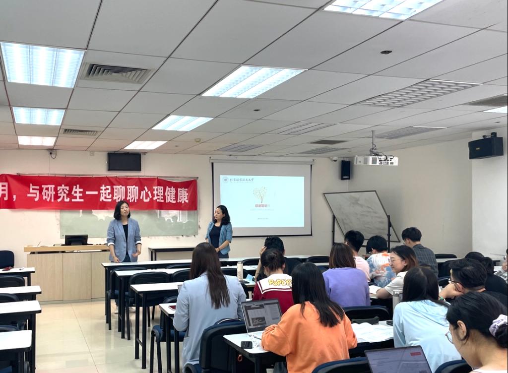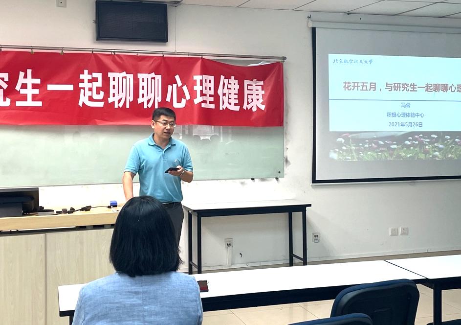 2021年5月26日,针对北航经管学院2020级新生的心理健康教育讲座《花开五月,与研究生一起聊聊心理健康》在新主楼A座1148成功举办。讲座邀请到beat365亚洲版官网积极心理体验中心副研究员冯蓉老师为大家进行心理健康相关知识的讲解。经管学院研究生指导主任单伟老师、学生工作办公室衣萌老师及研究生辅导员参加。
