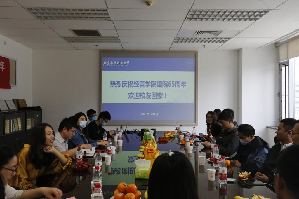 为庆祝经管学院成立65周年,5月16日上午,经管学院职业发展中心邀请2013、2014级硕士、博士校友们重返校园,举办2021“院庆归航”第一期座谈会。经管学院研究生指导主任单伟、研究生工作办公室主任衣萌及相关辅导员们出席了会议。座谈会由单伟主持。