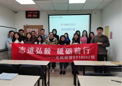11月10日晚,正值双十一来临之际,为了更好地教育同学们提高安全防范意识、树立理性消费观念,在班长赵婧迪的主持下,SY18082班开展了“理性消费”专题班会。此次班会的主要目的是让每位同学在邻近的“双十一”理性消费、自觉抵制不良诱惑、合理消费。