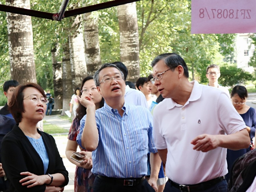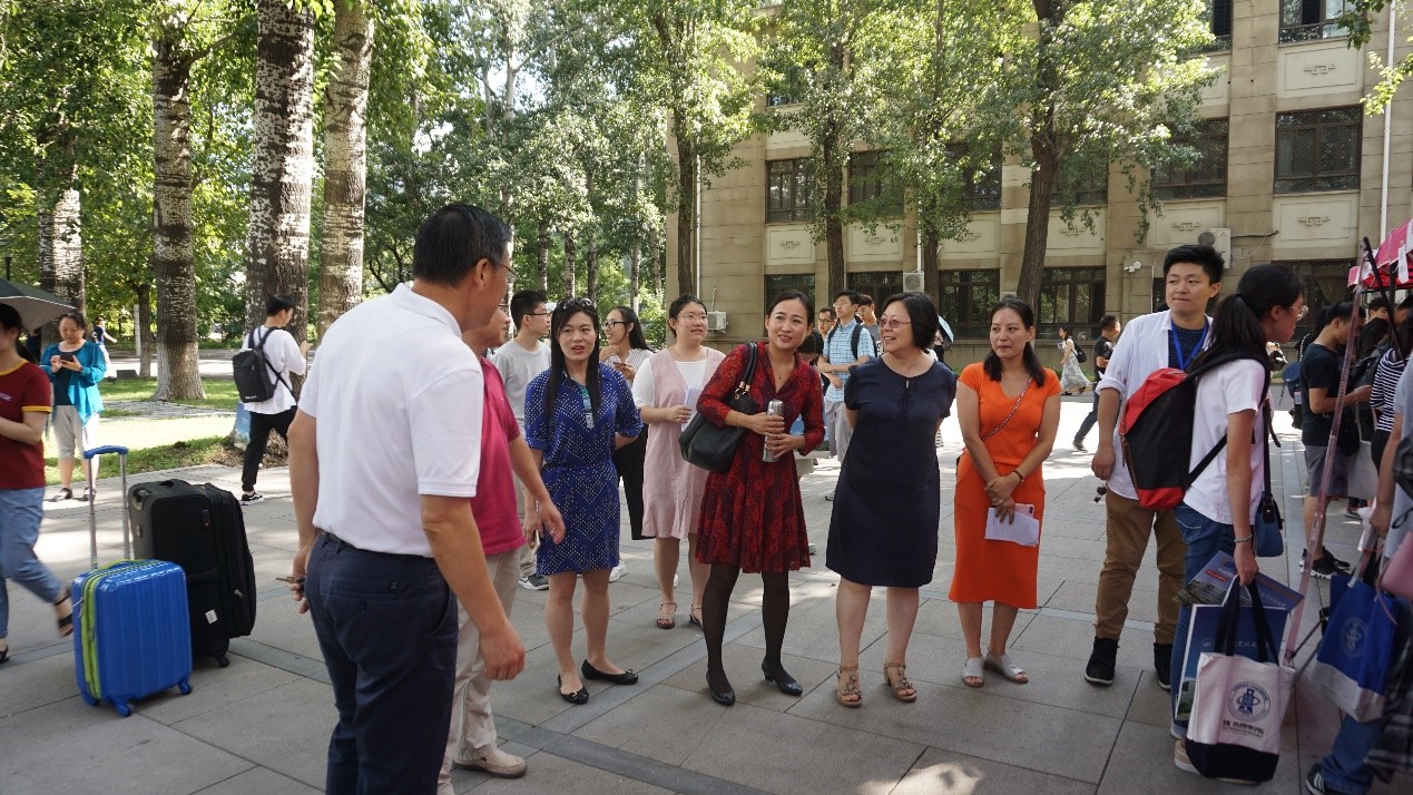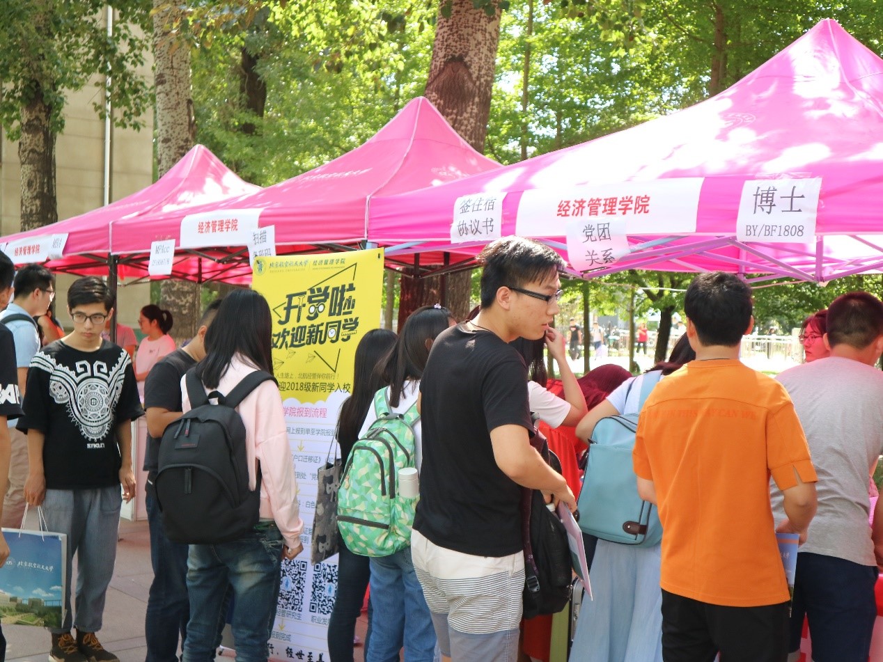 在火热的迎新现场,校领导和院领导纷纷前来慰问。校长徐惠彬、党委书记曹淑敏、副校长黄海军等校领导先后来到求是广场指导迎新工作,与前来报到的新生及家长热情交流、合影留念。经管学院院长范英教授、党委书记刘志新教授、副院长秦中峰教授、研究生指导主任单伟副教授、MBA中心主任田东文副教授、MPAcc中心主任白明副教授等也到场亲切慰问忙碌的志愿者们。