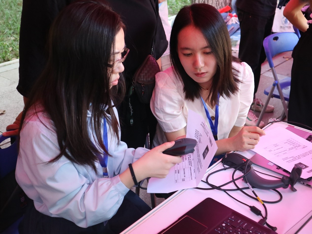烈烈暖阳,新生报道程序也顺利步入正轨,扫描网上报道条形码、转党团关系、收取材料、发放材料,负责迎新的志愿者们分工明确,工作有条不紊,整个迎新快捷、高效。志愿者同学的真诚服务与现场迎新老师们耐心的解答,让新生们一开始就感受到北航经管人的亲切与热情。