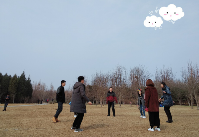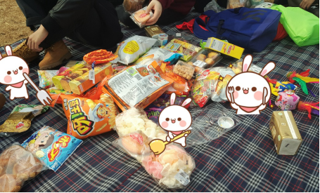 乘坐地铁到达奥森之后,锻炼的人随处可见,兴致勃勃、步伐矫健。同学们的心情也受此感染,脚步变得轻快起来。经过打量比较,最终选定了湖边的一大片空地作为我们郊游野餐的营地。大家铺好宽大的餐布,堆好大包小包的零食饮料,一天的活动便拉开了序幕。