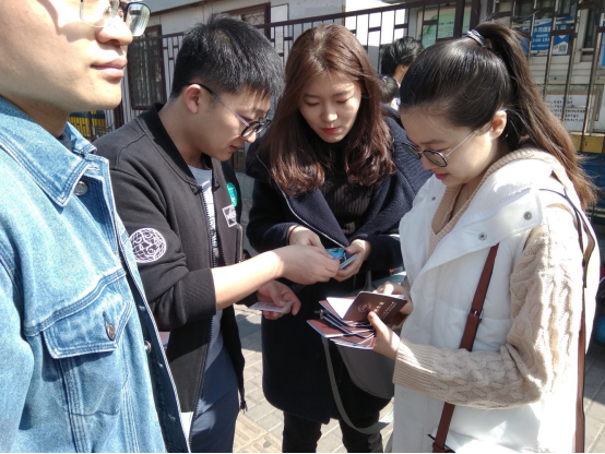 寒假过后的春天,迎来了青春活跃的气氛,同学们又迎来了开学后的紧张学习生活,为了更好的牢记十九大的使命,践行党员职责,学习雷锋精神,服务同学,ZY17083班党支部开展了“从身边小事做起,做合格党员”的活动。大家热情积极的与同学们沟通,为需要帮助的同学们做好服务工作,为了方便同学们的出行,减少大家不必要的时间浪费,2018年3月15日,党员和积极份子们携带好收集好的学生证和公交卡,来到了牡丹园公交卡充值点免费为同学们办理充值业务。3月的北京,春光明媚,大家的热情也是温暖人心,服务更是周到贴心,支部不仅通过多种渠道与同学们沟通,还很热心的提供点到点的收取公交卡的服务,将为人民服务的宗旨做到极致,为不方便的同学提供周到的服务。