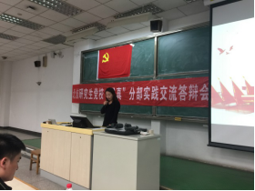 在答辩过程中,同学们都对前三次讲党课的老师表示了感谢,认为在前三次的党课中收获极大。在刘志新书记“从十一届三中全会到十九大看中国特色社会主义理论的开创与发展”的党课上,同学们了解到了中国特色社会主义开创的艰辛,发展的机遇与挑战,以及对十九大的解读。在朱稼兴老师“中共十九大主要精神及与入党的同志谈谈入党的几亇问题”的党课上,同学们通过一个个鲜明的例子和对比,看到了中国经济目前的状况,更加坚定了实现中国梦的信念。在郑彦良教授“新时代:从富到强:十九大精神学习体会之一”的党课上,同学们了解到中国是如何从富到强的。同学们在每一次党课结束后提交自己对党课的理解和感悟。