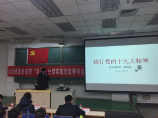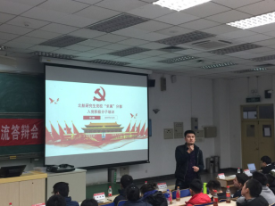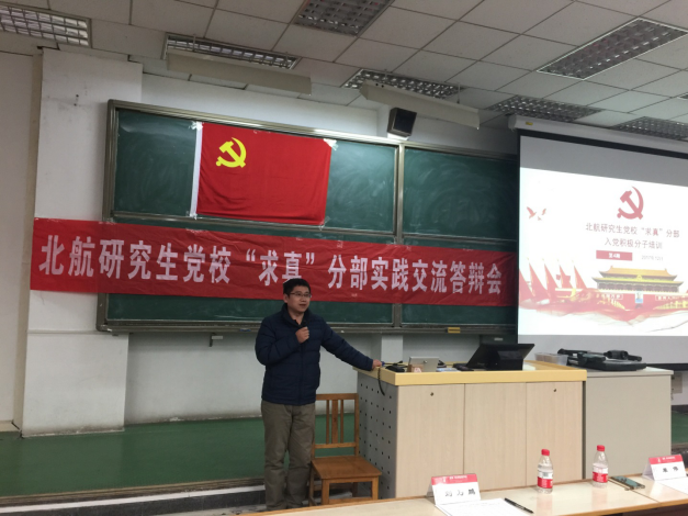 北航研究生党校“求真”分部第4期入党积极分子培训实践交流答辩会于2017年12月19日晚在主M101顺利召开。为学习宣传贯彻党的十九大会议精神,将“党课”与学习十九大相结合。本期培训的实践内容是以“学习十九大”为主题,以学习研讨、实践体验、总结汇报等小组形式开展活动,并进行总结汇报。出席此次交流答辩会的嘉宾有研究生综合管理处申永超老师,经管学院研究生指导主任单伟副教授,可靠性与系统工程学院党委副书记梁帮龙老师,答辩会由经管学院研究生工作办公室主任衣萌老师主持。