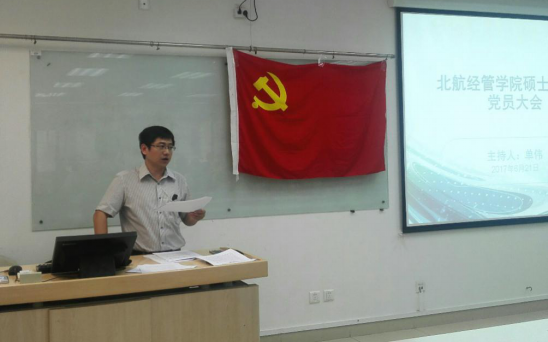 2017年6月21日,beat365亚洲版官网在新主楼A949召开全体研究生党员大会,本次大会主要目的在于强化基层党建政治功能,深化研究生党支部战斗堡垒作用,和研究生党员先锋模范作用;传达中央专项巡视北航党委的反馈意见,并通告学院整改任内容和整改措施;传达学习《北航推进“两学一做”学习教育常态化制度化实施方案的通知》;学习徐立平同志和黄大年同志的先进事迹。全体研究生按照博士研究生、学术型硕士研究生、专业硕士研究生,分三个时段依次参加了会议。会议由研究生指导主任单伟副教授主持。