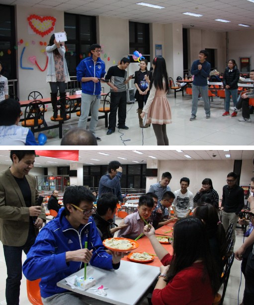晚上7点30分,伴随着欢快的音乐,包饺子活动在潘娜和郑润民同学的精彩主持下拉开帷幕。大家将食堂工作人员和好的面和饺子馅儿以传气球、比速度的方式抢到手后,火速开始着手包饺子。短短十分钟,每一组都为了争当包饺子第一名而大显身手,通力合作,很快饺子盘就被摆的满满当当。为了增进男女同间的互动和默契,在煮饺子间隙进行的“你划我猜”的游戏,更加势均力敌,经过几轮厮杀才决出优胜。在最具期待的吃饺子大赛中,男女搭配喂饺子的游戏规则让男女生有了更进一步接触的机会,非常有爱。不出意外地,活动的最后的表白环节将全场的气氛推向了高潮。整场活动欢声笑语,气氛温馨热烈。