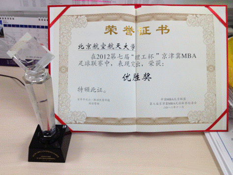 2012年11月25日,第七届“理工杯”京津冀MBA足球联赛,历时一个月终在北京理工大学圆满落下帷幕。北航MBA学生积极参加其中,凭借顽强的拼搏精神和良好球风获得优胜奖及优秀门将荣誉。