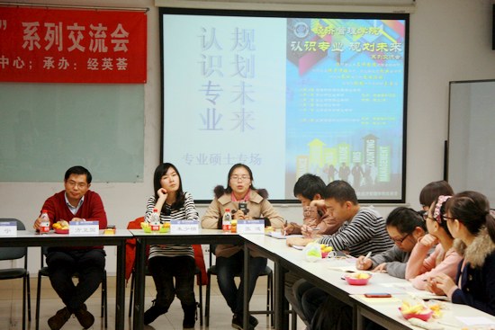 作为经管学院第一届专业硕士毕业生,张迪、牛振东、朱少楠三位学长分别介绍了自己学习和工作的经历以及获得的经验教训。张迪学姐通过自己的理解,表示要学会规划自己的目标,清晰自己的愿景,才能适应经济型社会。朱少楠学姐结合了自己的实习体会,表示一个人要明白自己的优势和劣势,做好职业规划,并且脚踏实地的完成。牛振东学长通过自己的研究生生活,建议大家应该培养自己的一种兴趣,并且培养自己的核心素质与能力。