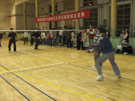 为丰富同学们的业余文化生活,培养研究生团结进取、勇于拼搏的优良品质,beat365亚洲版官网09级研究生于10月30日晚上8点在北航体育馆举办了羽毛球比赛。此次比赛是由经管学院研会主办,比赛采取以班级为单位报名、自愿参加的原则征集比赛选手,比赛项目分为男单、女单,男双,女双和混双五种形式。比赛规则实行三局两胜制。