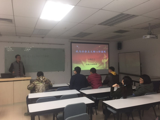 11月5日下午,ZY16084班在新主楼A1148开展了关于“我与社会主义核心价值观”主题班会。ZY16084班的全体同学出席此次主题班会。