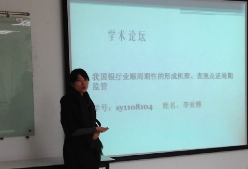 参加此次宣讲会的作者们都精心准备了他们的论文和PPT,宣讲会由李苍艳开场,她的论文题目是《Empirical Research on Critical Factors Affecting Employee Satisfaction Based on SEM》,文章从多个方面对联想集团的员工满意度进行了研究,并建模完成可靠性和适应程度分析,这一方法在参考员工满意度的管理企业方面有一定的可行性和实用价值。紧接着是于浩,他的论文题目是《基于结构方程的突发事件微博转发意愿影响因素建模及分析》,使用的基于结构方程理论对于提出的影响因素假设进行显著性检验,最终得到验证了3个假设不成立,而2个假设的正确性,并由此提出主要的影响个人转发意愿的影响因素是获得认同性和主观表达的意愿,这对于政府等应急管理的决策者了解突发事件发展的态势和公众的反应,从而对事件做出妥当地处置,具有十分重要的意义。宣讲会的最后一篇论文是来自李亚博的《我国银行业顺周期性的形成机理、表现及逆周期监管》,文章首先对金融系统顺周期性和银行逆周期监管的相关理论作简单评述;接着从内部因素和外部因素两个角度分析银行顺周期的形成机理,并在此基础上重点讨论我国银行业顺周期性的表现;最后对当前逆周期资本监管工具进行了总结。