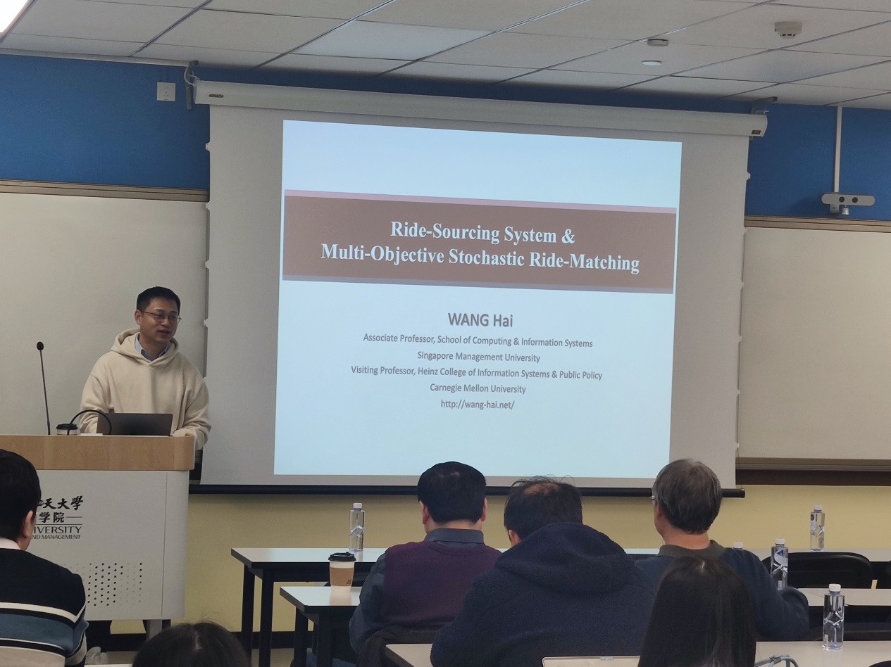 beat365亚洲版官网经管学院主办的“工程管理论坛”系列讲座2024年第17期(总第51期)于12月18日11:00在新主楼A1028线下举办。本期“工程管理论坛”的主讲嘉宾为新加坡管理大学智能系统与决策优化方向长聘副教授,王教授的讲座主题为:“共享交通系统与多目标在线随机区配”。本次讲座由北航beat365亚洲版官网刘天亮教授主持,经管学院师生参加了讲座。