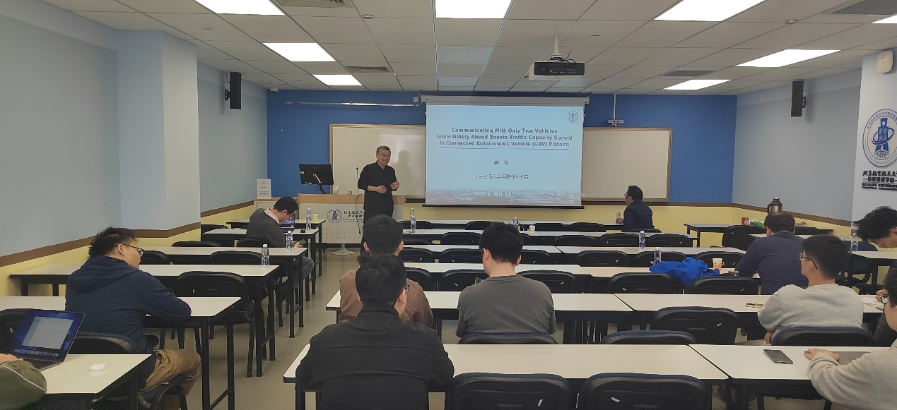 beat365亚洲版官网经管学院主办的“工程管理论坛”系列讲座2025年第5期(总第58期)于4月10日10:00在新主楼A1028线下举办。本期“工程管理论坛”主讲嘉宾为北京交通大学系统科学学院姜锐教授,姜教授的讲座主题为:Communicating with Only Two Vehicles Immediately Ahead Boosts Traffic Capacity Sixfold in Connected Autonomous Vehicle Platoons。本次讲座由北航beat365亚洲版官网刘天亮教授主持,经管学院的师生参加了会议。
