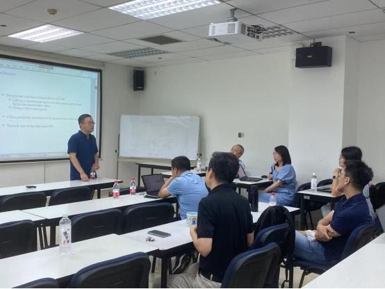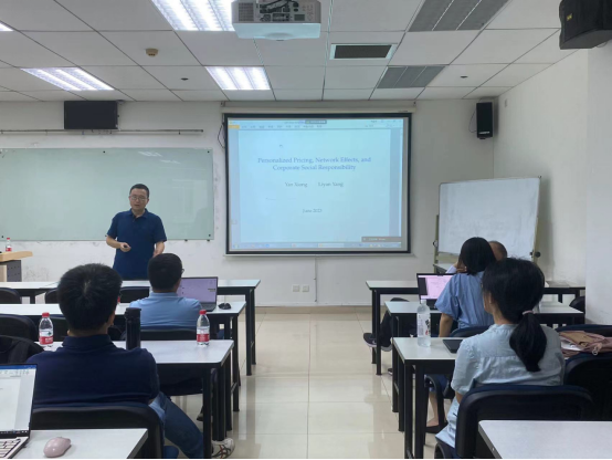 杨教授在报告中分享了他最新的一项研究工作“Personalized Pricing, Network Effects, and Corporate Social Responsibility”。在本次讲座中,杨教授提出了一种将企业社会责任 (CSR)与企业产品市场相结合的理论。在模型中,企业的产品质量具有网络效应,即随着购买该产品的消费者数量的增加,产品价值也会上升。此外,随着科技的发展和大数据的应用,企业可以对每位消费者采用个性化定价。研究证明,这样的企业可以将CSR作为降低产品价格的承诺机制,从而克服消费者之间的协调问题,提高公司利润,支持“通过做好事来做成好生意”的概念。最后,杨教授提出了对大数据杀熟的看法与政策启示。杨教授与参加融实论坛的师生们进行了深入的学术交流,讨论了理论模型设定、均衡条件、模型拓展、对监管的启示等相关问题。本期融实论坛学术报告在热烈讨论的氛围中圆满结束。