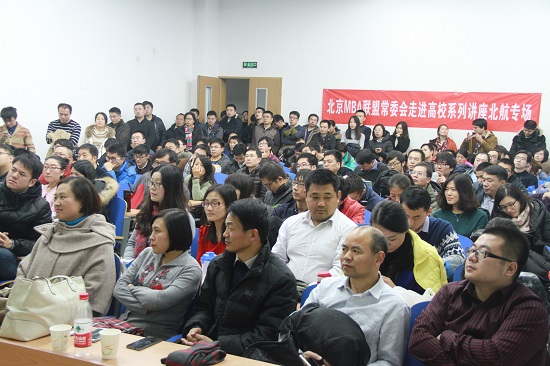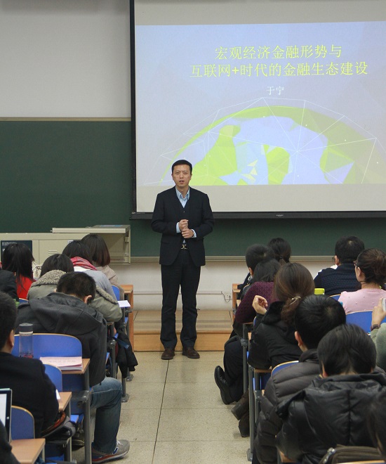 2015年11月28日18:30,中国人民大学财政金融学院金融学博士,美国纽约大学Stern商学院博士后于宁先生应北航MBA中心和联合会邀请前来,会同北航MBA师生及慕名前来的北京各高校MBA联盟主席,就宏观金融形势和创业融资等进行了详细的分析和讲解。