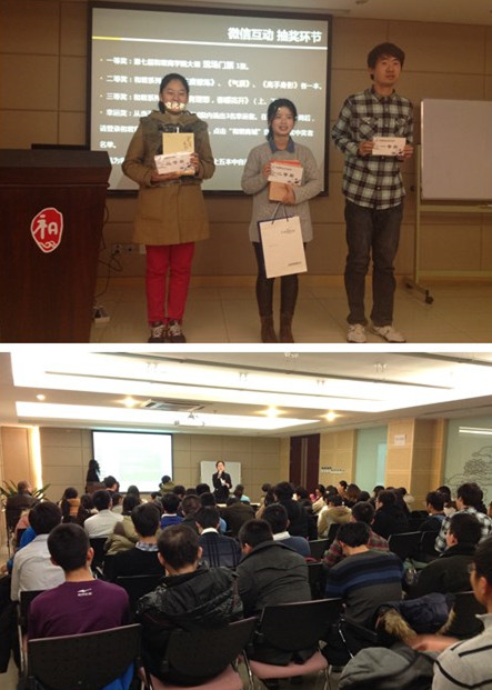 本次参观荣幸之处是公司特别邀请到了和君合伙人、和君商学院副院长周彦平百忙之中到场为大家精彩讲授“职业·事业·学业”。周总首先为大家分析了中国当前的经济形势和投资环境,其次联系实际帮助同学们就职业规划、学业发展及自我管理等方面做了全面指导。讲座结束后周总还耐心回答了同学们所感兴趣的问题,精彩讲座引得全场热烈掌声。在本次参观接近尾声之际,公司还安排大家进行微信抽奖,有三名幸运的同学获得了和君赠与的第七届和君商学院大课现场门票、和君系列书籍等大奖,没有获奖的同学也收到了和君为大家贴心准备的纪念品一份。