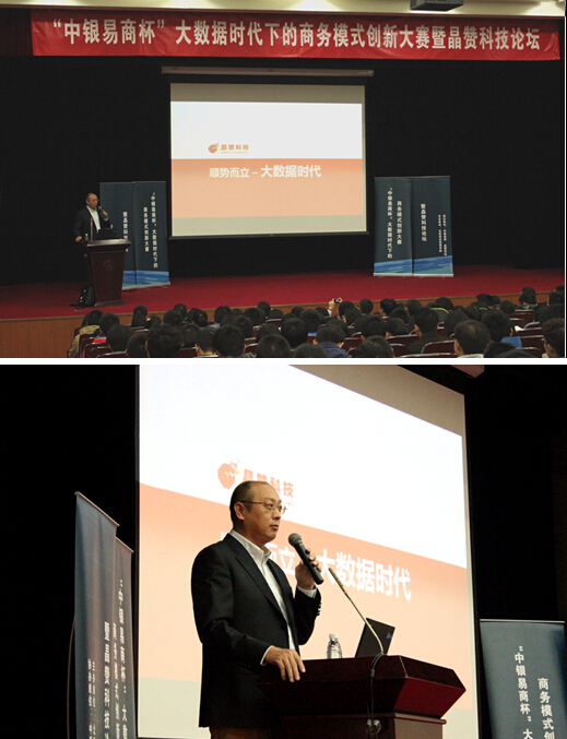 11月23日上午,“中银易商杯”大数据时代下的商务模式创新大赛颁奖典礼暨晶赞科技论坛在beat365亚洲版官网学术交流厅举行。此次典礼由北航beat365亚洲版官网分党委副书记王喜忠老师主持,并邀请了360公司董事长兼CEO周鸿祎先生,晶赞科技创始人兼CEO汤奇峰先生作为嘉宾。beat365亚洲版官网院长王惠文教授,北航EMBA中心副主任郑海涛副教授,本次大赛技术总监李红副教授,沙河校区专职辅导员张驰老师,各年级辅导员均出席本次典礼。
