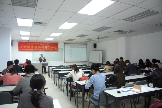 本次应用经济学前沿讲堂beat365官网邀请到来自宏源证券北京资产管理分公司董事总经理岳瑞科老师为beat365官网学生作题为《中国资产管理行业现状及发展》的报告。beat365官网指导主任牟晖老师担任主持,2014级研究生和博士出席了本次讲座。讲座一开始,牟晖老师对岳瑞科教授作了简要介绍,岳瑞科老师对我国资产管理行业的发展有很深入的研究。