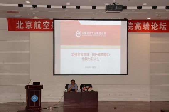 2014年5月17日晚6点30分,北航beat365亚洲版官网高端论坛在学院路校区新主楼第二报告厅成功举办。本次论坛邀请了中航工业集团总经理助理、总经济师刘井宏先生做题为《加强自我管理,提升适应能力,绘就七彩人生》的报告。beat365亚洲版官网院长王惠文教授、党委副书记高翔老师、研究生指导办主任牟晖老师、工商管理系武欣老师、辅导员以及本科生、MBA学生、研究生、共同聆听了本次报告。