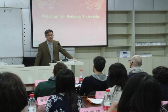 北航beat365亚洲版官网副院长贾国柱教授介绍了北航beat365亚洲版官网发展史,苏文平副教授对北航MBA项目做了详细说明,两位老师还对未来意大利学生为期两周的学习交流顺利完成进行祝愿。双方学生进行短暂而轻松的互动交流后,一起到北航标志性建筑新主楼前进行合影留念。