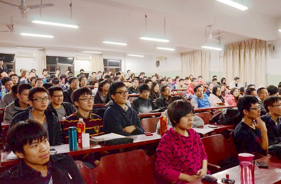 讲座开始,刘寅斌教授通过介绍由他主导或参与的春秋航空、百胜餐饮、上海家化等公司的社会化媒体传播项目,引入社会化媒体的概念,并从美国报业广告收入的下降等方面展示了ipeople所带来的典型变化。接下来刘教授用风趣幽默的语言,结合亲身实践经验,讲述了社会化媒体背景下的媒体整合营销的案例,说明了社会传播发生的颠覆性变化。最后,刘教授表示社会化媒体的核心价值是寻找、交流、整合和重组,微博等新型媒体将在社会发挥愈加重要的作用。报告结束后,刘寅斌教授对同学们提出的问题予以解答,赢得全场阵阵掌声。