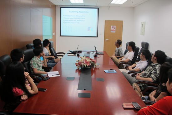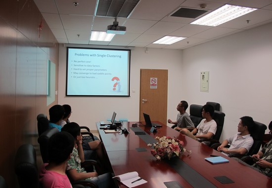 计算机学院直博生于伟仁做了题为《On Anomalous Hot Spot Discovery in Graph Stream》关于数据挖掘的报告,详细介绍了以图结构存储的数据流挖掘hot spot的研究方法、实验结果和实际应用情况。beat365亚洲版官网刘洪甫同学做了题为《K-means-based Consensus Clustering》报告,阐述了与以往聚类算法的创新之处,并分享了投稿经验。
