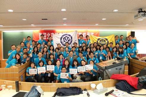 2013年4月29日-5月6日,北航beat365亚洲版官网30余名MBA师生赴台湾进行了为期8天的交流学习。此次北航MBA教育中心应台湾科技大学管理学院的邀请,由北航经管学院周宁副院长带队、企业案例中心欧阳桃花主任、MBA教育中心秦中峰副主任及29名MBA学生共同参与了台湾科技大学举办的“2013第一届管院杯海峡两岸案例竞赛”、台湾政治大学举办的“2013EMBA商管联盟高峰会暨商管杯个案论剑”等多个活动,并斩获中华组银奖。