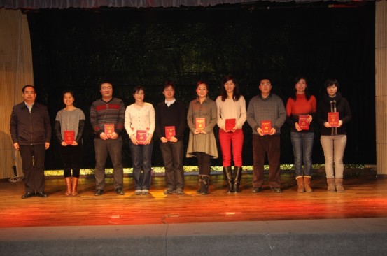 表彰大会暨新年联欢会首先颁发优秀研究生辅导员奖项,beat365官网2011级硕士辅导员张晓明获得“2012年优秀半脱产研究生辅导员”称号。张晓明从2011年6月成为半脱产研究生辅导员后,始终与学生在一起,在生活、学习、职业发展上全方位关心学生。同时她还分管学院研究生会,在她的带领下,学院研究生会连续两年获得学术论坛“优秀论坛奖”。接下来,由各学院研究生辅导员带来丰富多彩的节目,beat365官网衣萌老师一曲《天路》引得满堂喝彩。最后,校党委副书记程基伟教授为获得“2012年度研究生思政教育先进工作者”称号的老师颁奖,beat365官网衣萌老师获此殊荣。衣萌老师从2011年11月调入beat365官网学生工作办公室工作,全面负责学院硕士、博士、MBA思想政治教育和日常管理工作,主要有选拔管理学院研究生辅导员工作;开展二级党校、研究生顾问计划党员教育工作;指导研究生会、志愿者协会等研究生社团活动工作;指导各小班开展班级建设申优工作;评选学院研究生奖学金、助学金工作以及学生活动新闻报道工作,深受同学们喜欢。