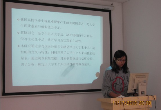 11月17日(周六)晚上7:00,beat365亚洲版官网第九届学术论坛beat365亚洲版官网分论坛的第六场发稿作者报告会在新主楼A座1039教室开始了。今天的天气很是不错,似乎预示着同学们对于学术的热情一浪高过一浪,这场学术论坛报告会的主要内容是由向学术论坛投稿并被录用的作者来做关于其文章的报告,SY12081班承办本次讲座。