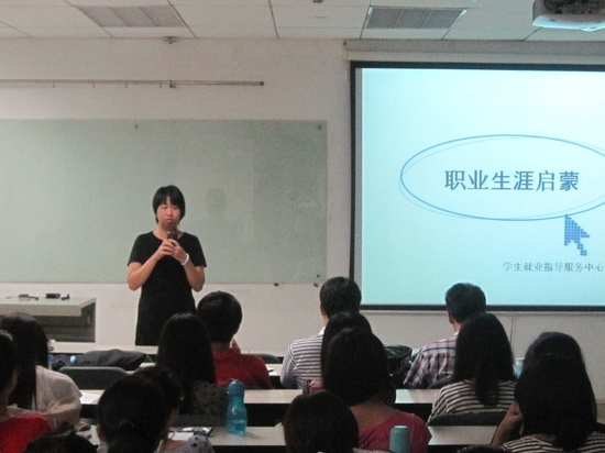 2012年9月10晚上六点半,职业发展中心特邀请北航学生就业指导服务中心就业教育主管赵敏老师为研一新生进行“2012级研究生新生职业生涯启蒙讲座”,讲座由职业发展中心梁娜老师主持。