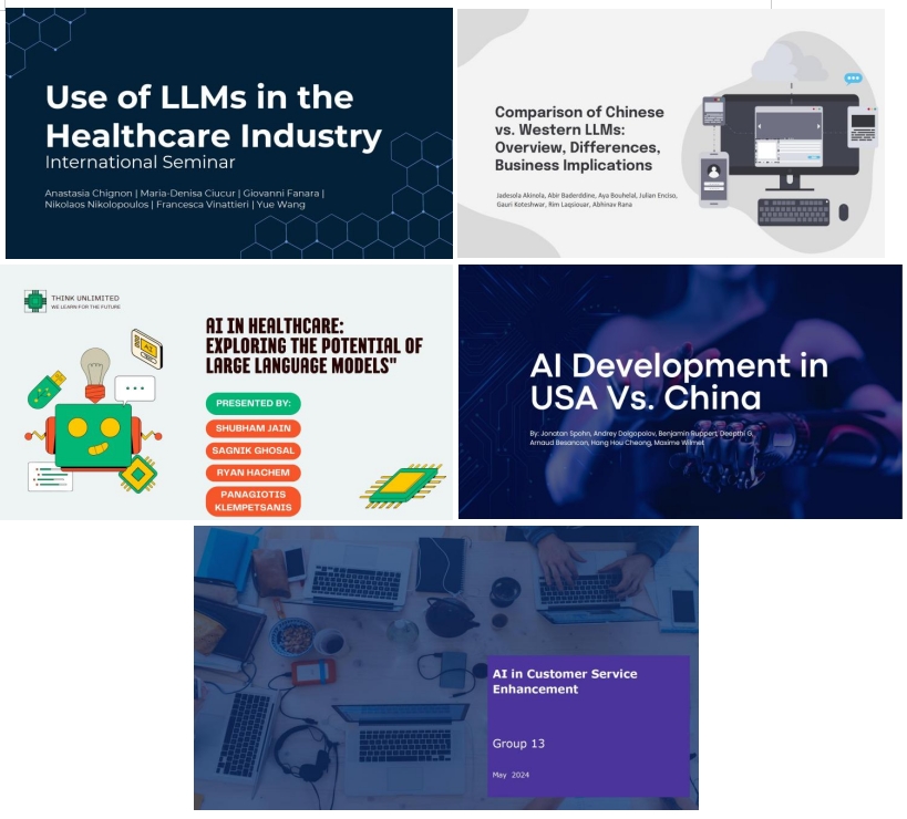 5月31日,ESCP的86名学生分成13组进行了阶段性学习成果汇报。从数据交换和数据市场到人工智能和大语言模型在金融、教育、商业、医疗领域的应用,再到中、西方大数据和人工智能产业发展现状的对比,都充分体现了参访学生对于人工智能相关前沿领域的深度思考。