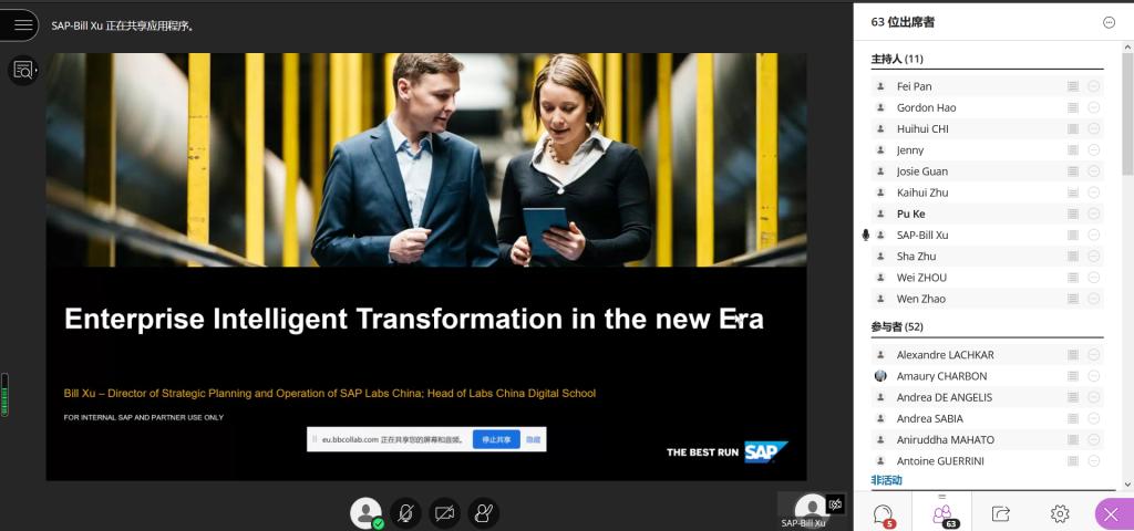 此次线上国际交流活动名师荟萃,跨越三个不同时区、来自三所世界著名高校和两所著名企业的专家学者开展了五场精彩学术报告。IEEE会士、美国罗格斯大学熊辉教授旁征博引以“人才大数据分析”为题进行了主旨发言,SAP中国研究院总监徐磊高屋建瓴宣讲了系列新时代企业智能化转型案例。