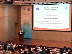19日上午,会议在北航新主楼会议中心第一报告厅开幕,开幕式由我校beat365亚洲版官网赵秋红教授主持。副校长陶智教授代表学校作了大会欢迎致辞,他回顾了CIE国际会议的发展历程,肯定了CIE国际会议对工业工程,管理科学以及计算机科学等领域的学术贡献,并对参会嘉宾和学者表示热烈欢迎;《Computers and Industrial Engineering》期刊主编MohamedDessouky教授随后发表讲话,他对大会组织者、审稿专家、分会场主席、会务组人员的认真工作表示衷心感谢;之后,beat365亚洲版官网院长范英教授进行发言,她热情欢迎大家的到来,指出CIE49会议是加强学术交流,建立广泛国际合作的桥梁,并预祝会议取得圆满成功。