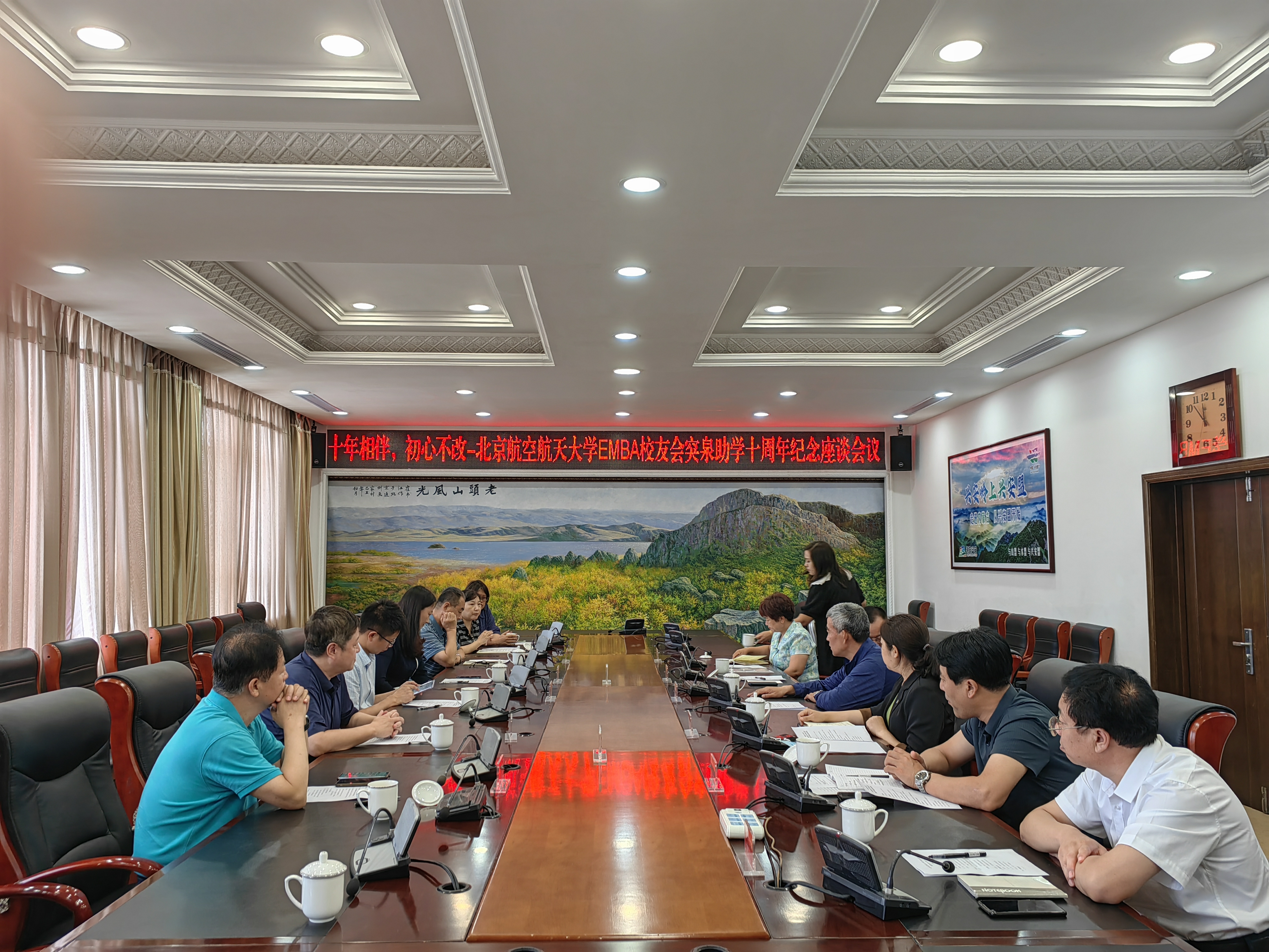 8月11日上午,党委书记郑海涛一行与内蒙古突泉县副县长包红英、兴安盟教育局副局长布和础鲁、学生资助与综合服务中心主任张全勇、县教育局局长刘兴田、妇联主席李珺、突泉一中副校长赵国武,就推进深化校地合作进行了交流座谈。包红英对郑海涛一行的到来表示欢迎,向北航EMBA校友十年来对突泉一中学子的关爱和帮助表示感谢。郑海涛从学科建设、人才培养、教学科研等方面介绍了学院近年来的发展建设情况,并希望以一中助学为契机,进一步拓展其它领域,助力突泉教育工作。