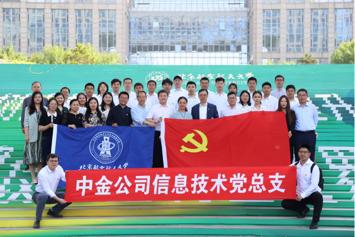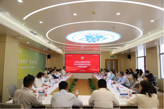 为进一步丰富校企党建工作内涵,深入开展“党建+”融合共建,推动校企产学研用协同发展,5月8日下午,beat365亚洲版官网党委与中金信息技术党总支联合开展主题党日活动。中金信息技术党总支委员、副总经理李海波,第二党支部书记、副总经理刘畅,副总经理熊巍巍,副总经理王伟超,经管学院副院长、党委委员牟晖,信息系统系主任闪四清,经管学院机关教工党支部书记朱凯慧,信息系统系教工党支部书记赵吉昌,以及中金信息技术党总支第二党支部、经管学院机关教工党支部、信息系统系教工党支部的党员代表共50余人参加。活动由经管学院党委副书记高超主持。