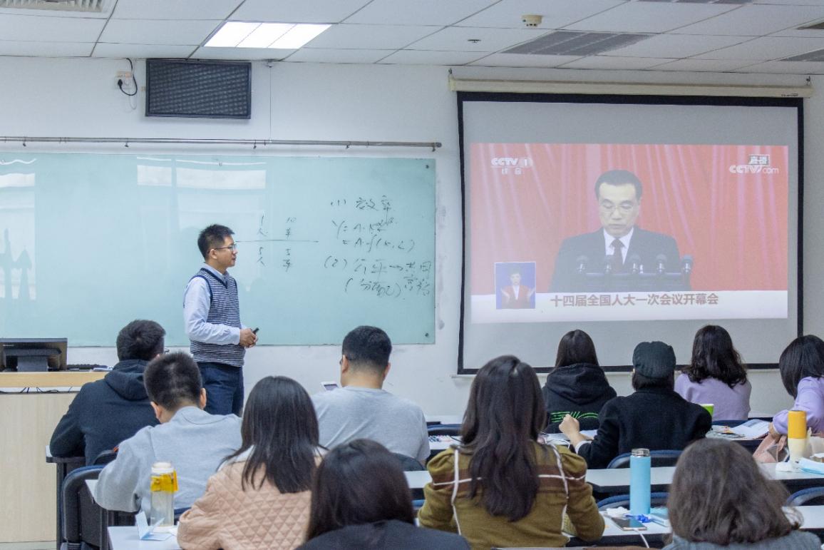 在开幕式结束后,郑海涛书记运用经济学领域的专业知识为师生全面解读会议相关内容,对当前我国就业形势进行了科学的分析,帮助师生们深入理解会议内容。