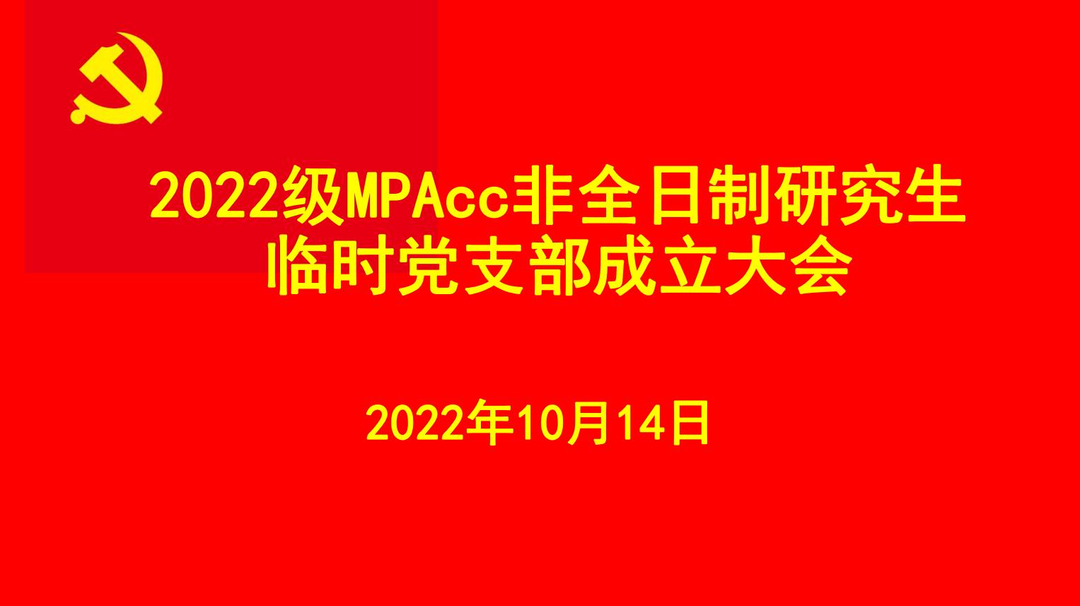 10月14日,beat365亚洲版官网2022级MPAcc非全日制研究生临时党支部成立大会线上召开。会议由beat365亚洲版官网MPAcc教育中心副主任任晖主持,学院党委副书记高超出席大会并讲话,支部全体党员参加会议。